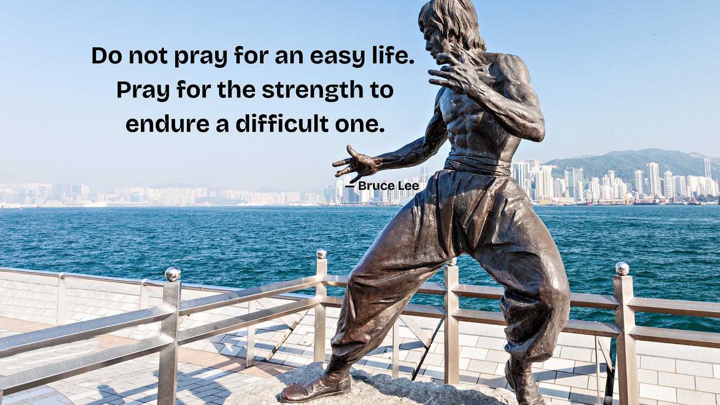 "Do not pray for an easy life. Pray for the strength to endure a difficult one." — Bruce Lee